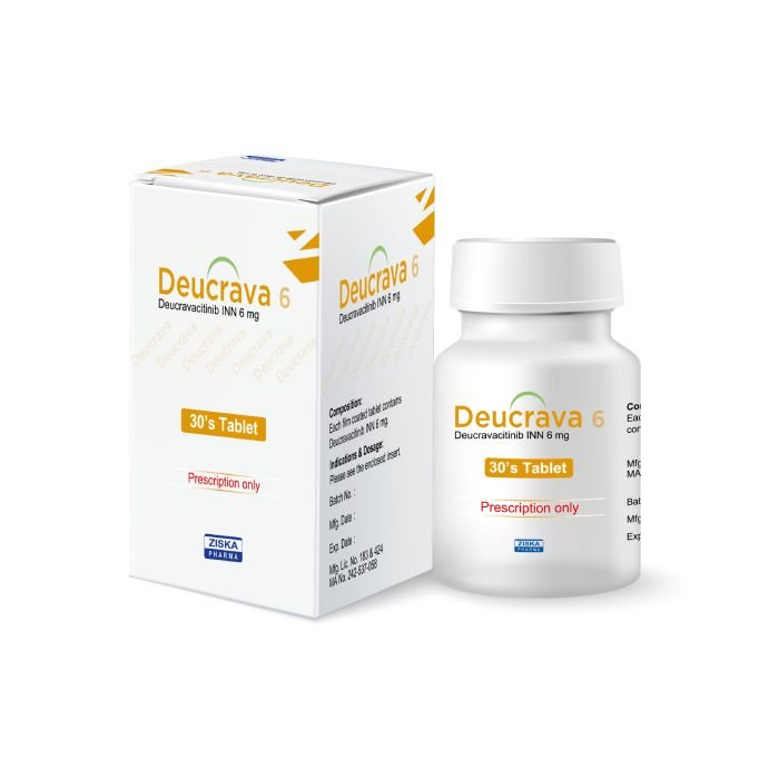 Deucrava (Deucravacitinib) 6 mg exerts its pharmacological effects by selectively inhibiting Janus kinases (JAKs), particularly JAK1, JAK2, and Tyrosine kinase 2 (TYK2). By blocking these enzymes, Deucrava interferes with the signaling pathways involved in the immune response, thereby reducing inflammation and slowing down the abnormal cell growth associated with psoriasis.