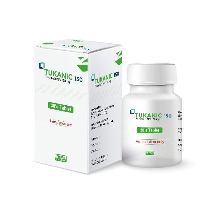 Tukanic (Tucatinib) 150 mg exerts its pharmacological effects by selectively inhibiting the activity of the HER2 protein. By blocking HER2 signaling pathways, Tucatinib inhibits cancer cell proliferation and survival, leading to tumor regression and inhibition of cancer progression.