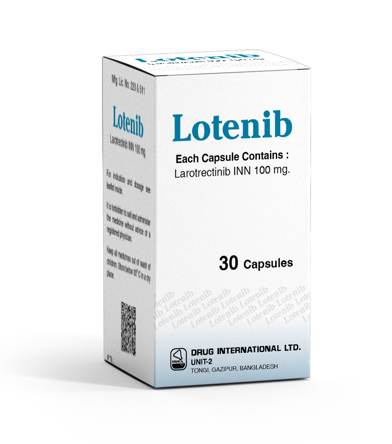 Composition: Each capsule contains 100 mg of Larotrectinib INN.