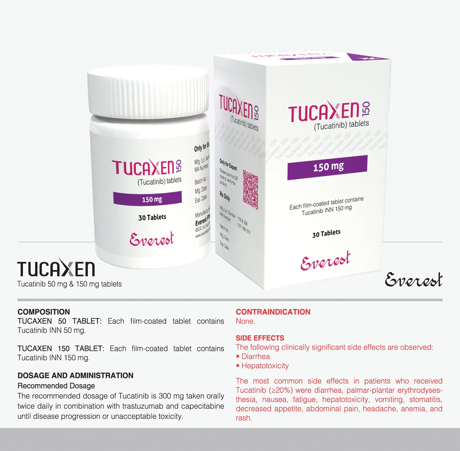 Precautions and Warnings: Patients on Tucaxen should be monitored for signs of hepatotoxicity, diarrhea-associated dehydration, and interstitial lung disease/pneumonitis. Regular liver function tests are advised, and any symptoms suggestive of liver or lung issues should be promptly reported.